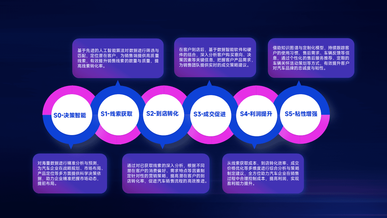 通过拓宽潜在客户来源、、、、优化线索分配并提高到店转化率,,,以增强销售效率。。同时,,利用线索数据不断优化分析模型,,有效提升转化率,,,,扩大营销影响力。。。。
